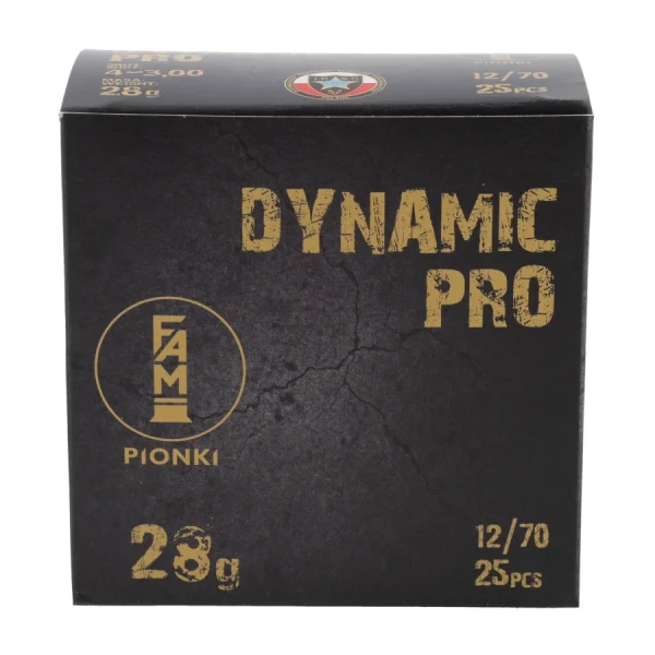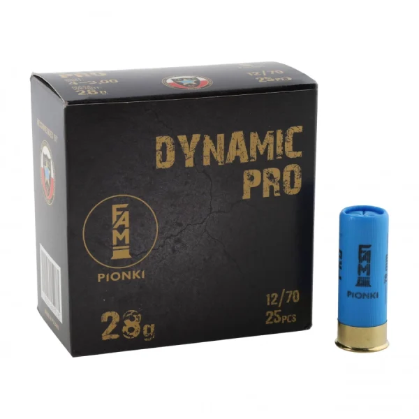 FAM Pionki Dynamic Pro to amunicja śrutowa kalibru 12/70, stworzona specjalnie z myślą o dynamicznym strzelectwie sportowym, szczególnie w konkurencjach IPSC Shotgun. Dzięki zoptymalizowanemu ciężarowi ładunku (28 gramów) oraz większemu okuciu łuski (aż o 11 mm wyższe niż w wersji Dynamic), nabój zapewnia pewne i skuteczne obalanie celów reaktywnych nawet na średnich dystansach.